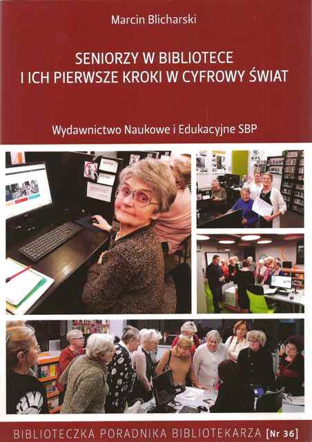 Książka zachęca bibliotekarzy do organizowania kursów komputerowych dla seniorów, a tych którzy już to robią motywuje do dalszej pracy. Konspekty podsuwają pomysły i inspirują do działań. Marcin Blicharski dzieli się swoimi doświadczeniami z pracy na rzecz osób starszych – seniorów, których nazywa „młodzieżą w wieku dojrzałym”. Na początku publikacji zamieszczono Uwagi do prowadzenia zajęć i ich organizacji oraz propozycję Dziennika zajęć na kursach komputerowych. Zasadniczą część stanowią 22 konspekty dla grupy początkującej. Wśród tematów odnajdziemy bardzo wstępne zagadnienia, takie jak: początki pracy z komputerem; Nauka obsługi myszki; Nauka obsługi klawiatury; Zapoznanie się z systemem. Pulpit czy Obsługa okien, kosza oraz aplikacji systemowych. Wymagające więcej wprawy np.: Edytor tekstu; Arkusze kalkulacyjne; Tworzenie prezentacji; Część zaś to spotkania poświęcone Internetowi: Pierwszy krok w cyfrowy świat Internetu oraz sposoby połączenia z Internetem; poruszanie się po Internecie, praktyczne strony WWW; zakładanie poczty na Gmail-u oraz nauka korzystania z konta; narzędzia Google w tym pisanie za pomocą mikrofonu; Wirtualne podróże 360 stopni – cały świat, a nawet kosmos; Komunikator internetowy Skype; Zapisywanie plików na nośnikach pendrive oraz nagrywanie płyt CD/DVD. Ciekawą propozycją jest zapoznanie słuchaczy ze stronami poświęconymi kulturze (Przeglądanie zdjęć, muzyki i filmów na komputerze oraz korzystanie z YouTube; Wirtualna rzeczywistość i korzystanie z okularów VR; Legalna Kultura) oraz bezpieczeństwu w Internecie (Bezpieczny senior w Internecie). Pojawiła się również propozycja oswajania seniorów z technologią na co dzień – e-Bilet – zamówienie, zakup lub rezerwacja. [dobreksiążki.pl]