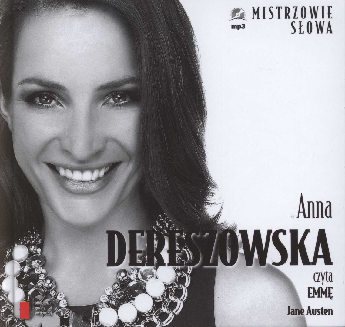 Emma / Jane Austin ; czyta Anna Dereszowska. - Warszawa : Bellona SA ; Agora SA, copyright 2012. - 1 płyta audio (CD) [mp3] (17 godz. 55 min) : zapis cyfrowy, stereo ; 12 cm + dodatek drukowany [31, [1] strona : ilustracje kolorowe ; 14 cm x 15 cm].