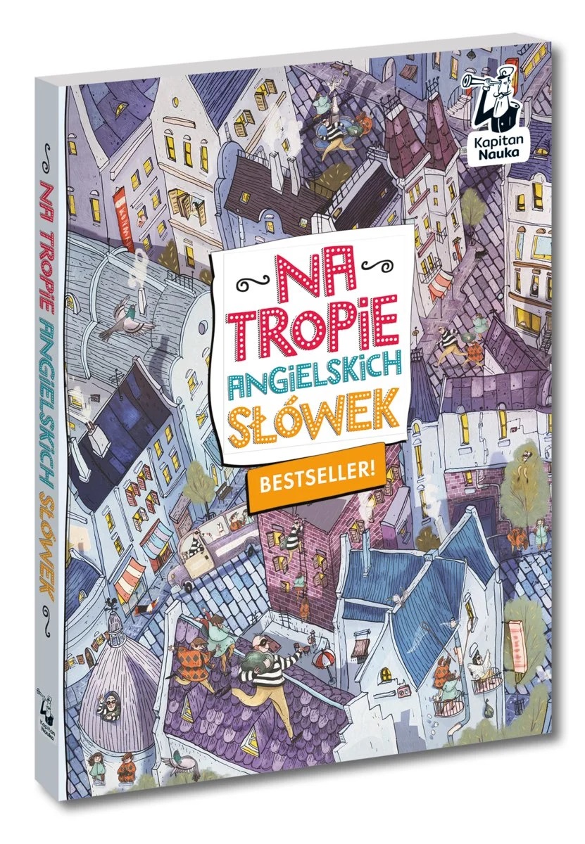 Na tropie angielskich słówek to wyjątkowa, wielkoformatowa książka do nauki angielskich słówek podczas wciągających zabaw obserwacyjnych. Zachwycające, niebanalne ilustracje znakomitych polskich ilustratorów zabiorą małych tropicieli w intrygującą podróż w poszukiwaniu angielskich słów. Angielskie wyrazy, zwroty i proste zdania pojawiają się na planszach na zasadzie skojarzeń, dzięki czemu dzieci przyswajają słówka intuicyjnie, podczas wypatrywania różnorodnych obiektów i odkrywania bogactwa szczegółów ilustracji. Poznawane słownictwo dotyczy m.in. liczb, kolorów, emocji, członków rodziny, środków transportu, części ciała, kształtów czy zwierząt. [lubimyczytac.pl]