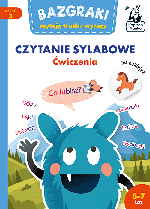 Bazgraki czytają trudne wyrazy. Czytanie sylabowe. Elementarz to książeczka z zadaniami dla dzieci w wieku od 5 do 7 lat, które już znają alfabet i radzą sobie z czytaniem prostych wyrazów oraz pierwszych zdań. Zapoznają dziecko z głoskami nosowymi, dwuznakami oraz zmiękczeniami. W środku czekają różnorodne zadania: przyklejanie naklejek, odnajdywanie sylab i wielkich literek, łączenie wyrazów z obrazkami, szukanie odpowiedzi na ciekawe pytania, czytanie angażujących tekstów oraz dopowiadanie ich możliwego zakończenia i wiele, wiele innych. [kapitannauka.pl]